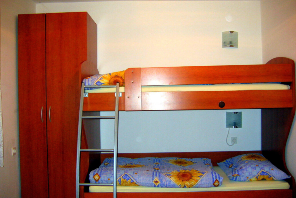 Prvi apartma je primeren za 2 osebi, s spalnico z zakonsko posteljo, kuhinjo in dnevnim prostorom z raztegljivim kavčem. Drugi apartma sprejme 4 osebe, saj ima poleg zakonske postelje tudi pograd. Oba apartmaja ponujata dobro opremljeno kuhinjo, moderno kopalnico in udobje, ki ga pričakujete v apartmajih za več oseb Izola, Obala.