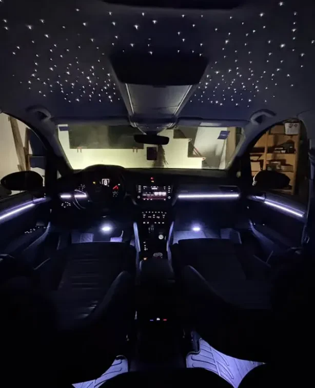 Kot piko na i pa vašemu jeklenemu konjičku izkažemo posebno pozornost tako, da ga lahko opremimo z ambientalno osvetlitvijo po vaših željah in izbiri, naj bodo to stropne lučke ali talna led osvetlitev - možnosti je ogromno! Naša ekipa je tukaj za vas, ko potrebujete strokovnjaka za montažo starlight osvetlitve, popravilo ozvočenja ali drugih električnih del, zato ne oklevajte in še danes stopite v stik z nami.