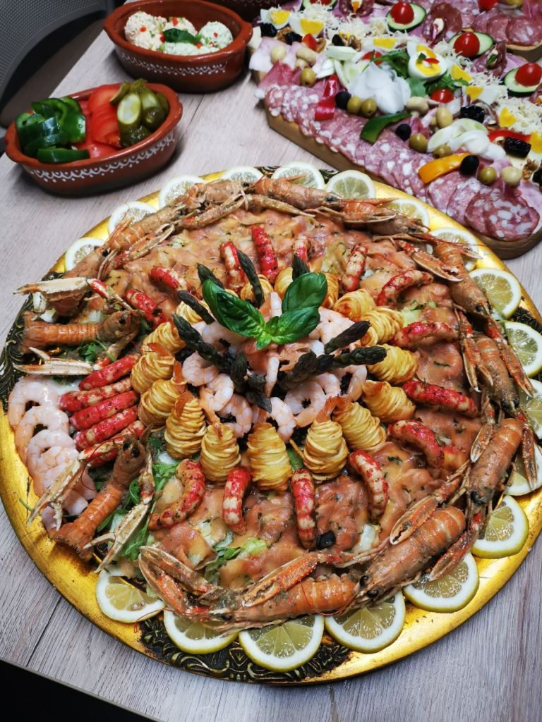 Prva faza je samopostrežna, kjer se gostje sami sprehodijo med bogato izbiro toplih in hladnih jedi. Vse je pripravljeno sproti, zato hrana vedno diši domače in sveže.