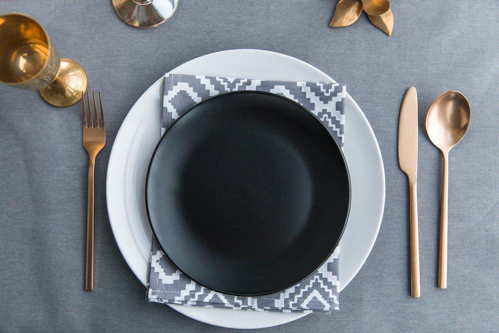 - Estetsko dovršeni krožniki, kristalni kozarci in vrhunski jedilni pribor za popolno postrežbo.