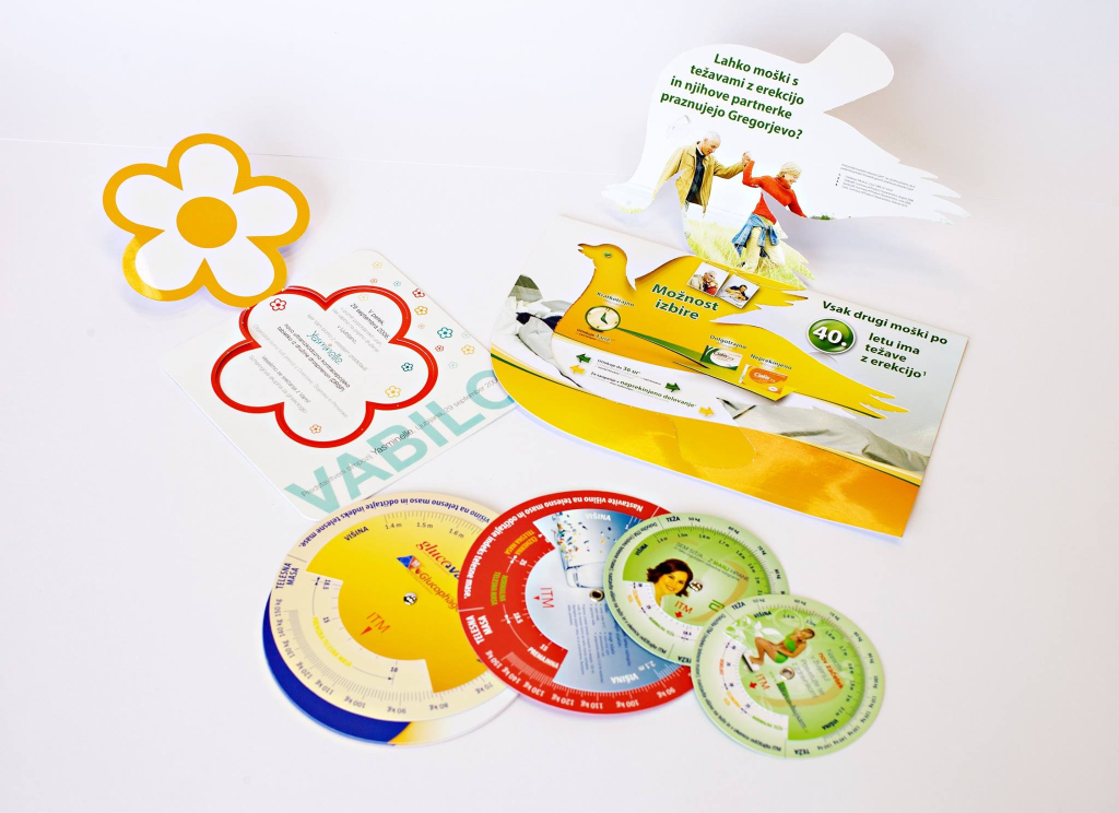 - obešanke, plakate in mape,