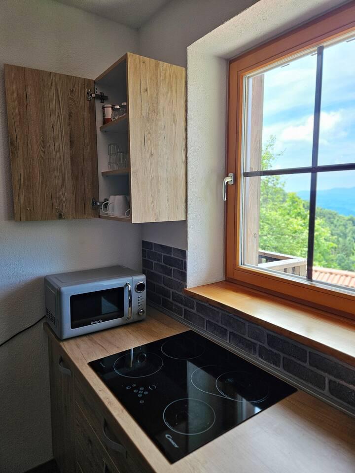 Vsak apartma ima popolnoma opremljeno kuhinjo, kjer si gostje lahko sami pripravljajo obroke. Na voljo so:
