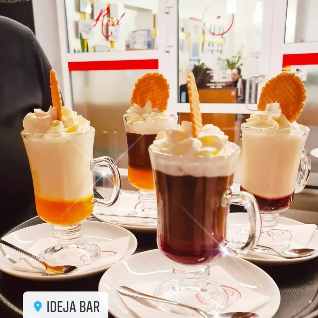 IDeja bar ne ponuja samo pijače in hrane, temveč pristno doživetje, ki bo zadovoljilo vaše čute. Naša kreativna ekipa ustvarja napitke (kave, ledene kave, kakav, vročo čokolado), ki so pravo umetniško delo in pri tem uporablja le najboljše lokalne sestavine.