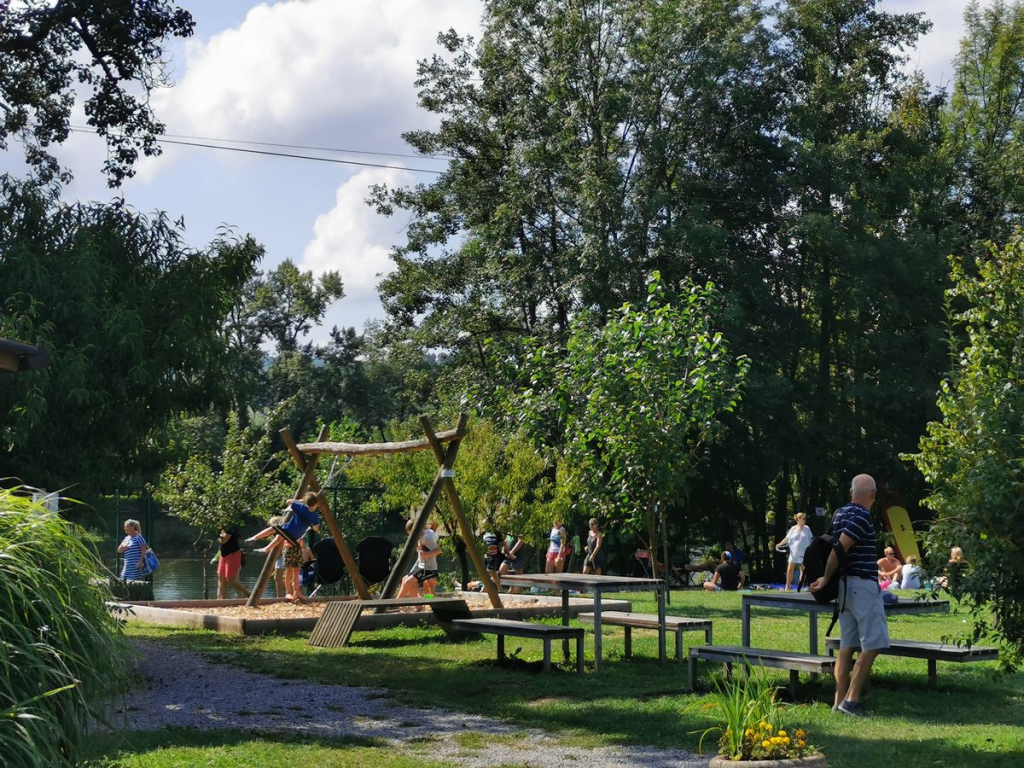 • travnik ob kopališču, ki je kot nalašč za sproščene zabave na prostem,