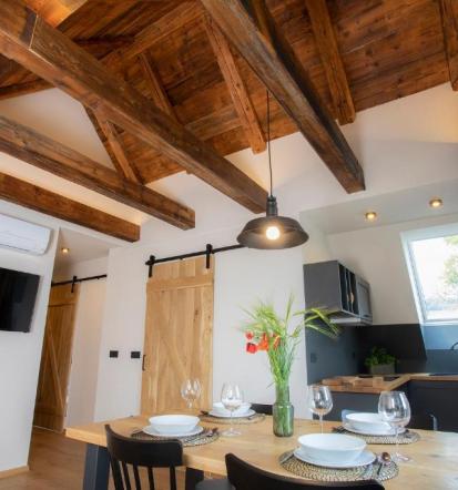 V hiši je na voljo 4 sobe in 3 apartmaji, vsi urejeni z občutkom za naravne materiale in nežne barvne tone. Leseni tramovi, topli tekstilni dodatki in sodobno oblikovano pohištvo ustvarjajo prijetno atmosfero, v kateri se gostje zlahka sprostijo. Prostori so svetli, prostorni in skrbno vzdrževani, kar še dodatno poudari udobje, ki ga prinaša najem sob in apartmajev na Bledu, Gorenjska v House Troha. Vsaka enota je premišljeno zasnovana – od udobnih postelj do funkcionalnih detajlov, ki poskrbijo za občutek domačnosti.