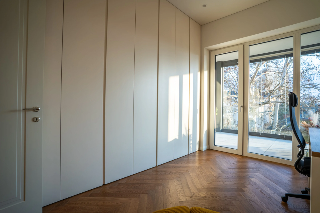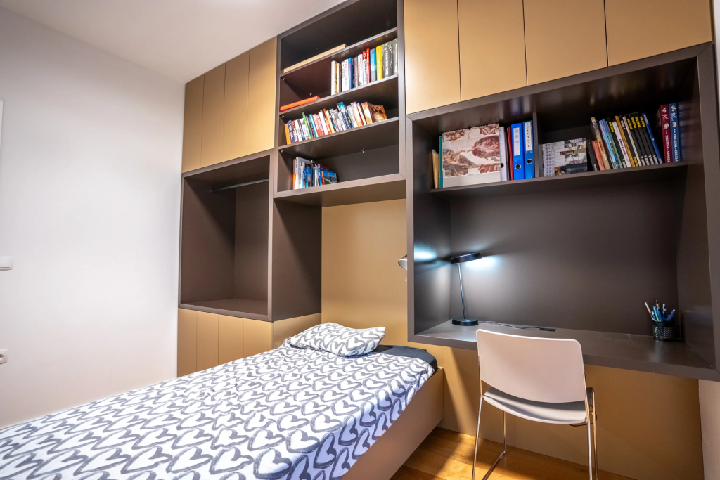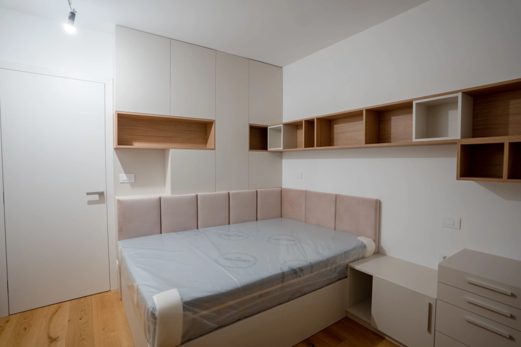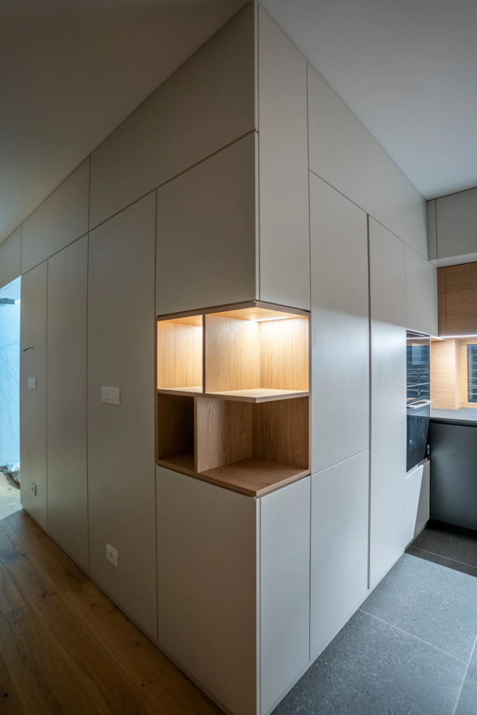 Poleg kuhinj in kopalnic nudimo celotno notranjo opremo po meri v Sloveniji – od spalnic in dnevnih sob do predsobi, garderob in otroških sob. Naši izdelki vključujejo tudi skrite postelje, funkcionalne omare, oblaganje sten, stopnišča in druge detajle, ki prostoru dodajo toplino in prefinjenost.