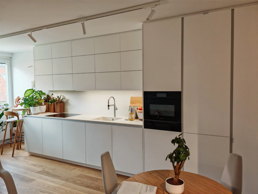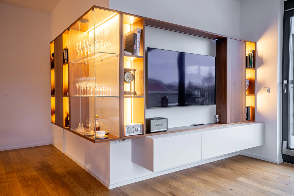 Naša ekipa združuje dolgoletno strokovno znanje z individualnim pristopom, saj verjamemo, da je vsak dom unikaten. Pri izdelavi notranje opreme po meri po vsej Sloveniji se osredotočamo na tudi tiste najmanjše podrobnosti, kot so razporeditev shranjevalnih površin, ergonomija delovnega prostora in vizualna povezanost med materiali. Posebno pozornost namenjamo tudi zaključnim obdelavam, ki prispevajo k občutku kakovosti in prefinjenosti prostora. Z vključevanjem sodobnih tehnologij in natančnega merjenja zagotavljamo, da so vsi elementi izdelani z visoko stopnjo natančnosti in se popolnoma prilegajo prostoru, ne glede na njegovo velikost ali konfiguracijo.