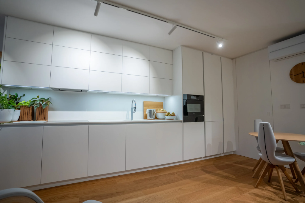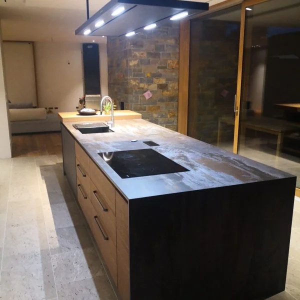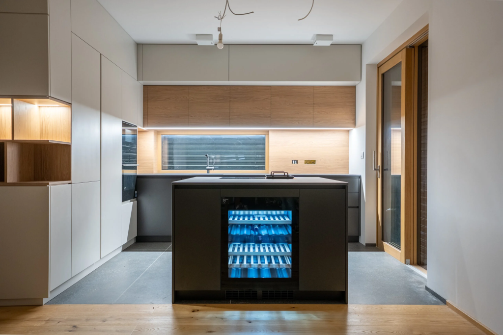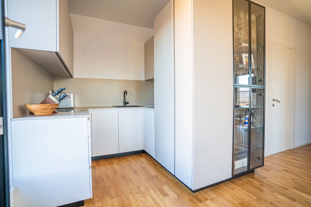 Kuhinja je srce doma, zato ji posvečamo posebno pozornost. V sodelovanju z naročnikom ustvarimo unikatne kuhinjske sestave, ki odražajo slog in način življenja uporabnika. Pri izdelavi uporabljamo kakovostne materiale, kot so les, dekorativni kamen in steklo, kar omogoča izjemno odpornost in eleganten videz. Pogosto vključujemo steklene stene v kuhinji, sodobne kuhinjske pulte in premišljene prostorske rešitve, ki povezujejo lepoto in praktičnost.