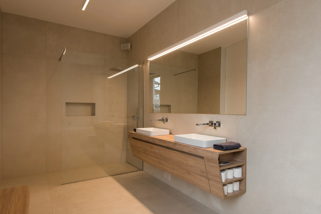 V kopalnicah skrbimo za vrhunsko izdelavo omar, ogledal in drugih elementov, pri čemer prevzamemo celotno opremo razen keramike in vodovodnih del. Tako je izvedba usklajena in brez nepotrebnih zapletov.