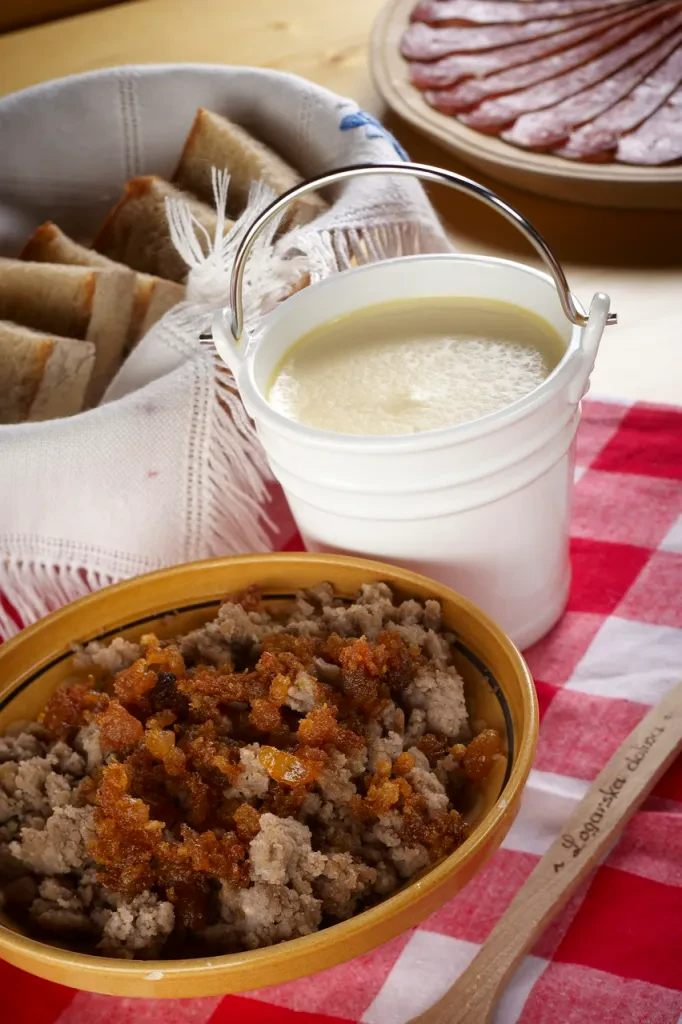 - gobove juhe, ajdovi žganci z ocvirki, sirovi štruklji in zavitki,