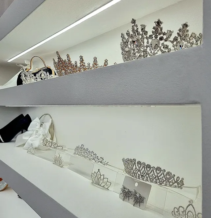 Poleg poročnih oblek nudimo tudi svečane obleke za druge posebne priložnosti – maturantske večere, krste, obletnice in gala dogodke. Ker vemo, da vsaka ženska želi izstopati, vam pri izbiri obleke svetujemo osebno in strokovno. Na voljo smo za vse – od prvih pomerjanj do končnih popravkov, saj v našem salonu opravljamo tudi šiviljska popravila za vse vrste oblek. Tako poskrbimo, da se vsaka obleka popolnoma prilega vaši postavi.
