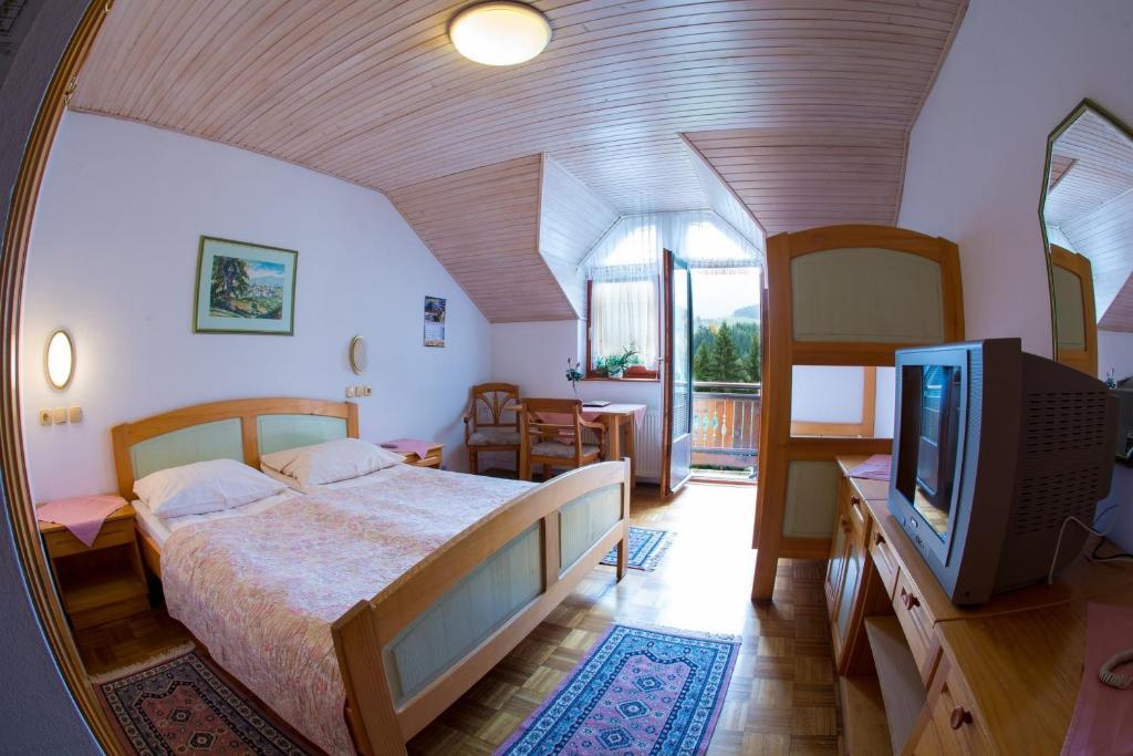 Vse sobe so opremljene v značilnem pohorskem slogu, s toplimi lesenimi elementi in domačno atmosfero. Ponašajo se z LCD TV sprejemniki, Wi-Fi omrežjem, zasebno kopalnico in balkonom ali teraso s pogledom na gozdove, travnike in vasico.