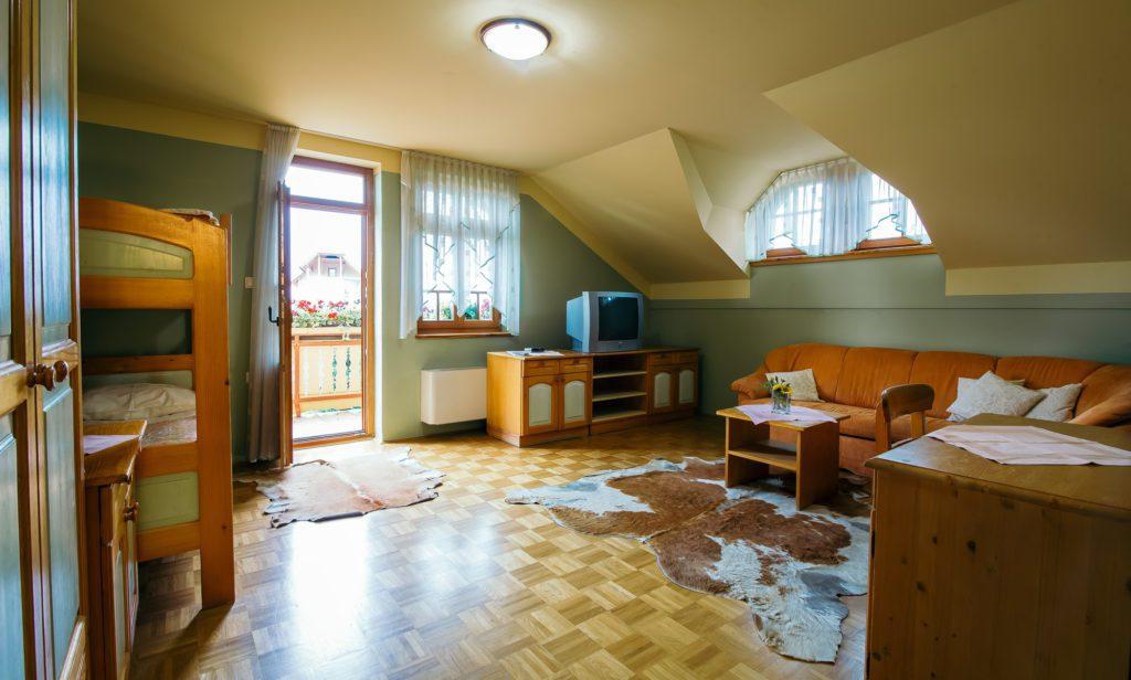 - 1 družinska soba za do 8 oseb, z ločeno spalnico in bivalnim prostorom,